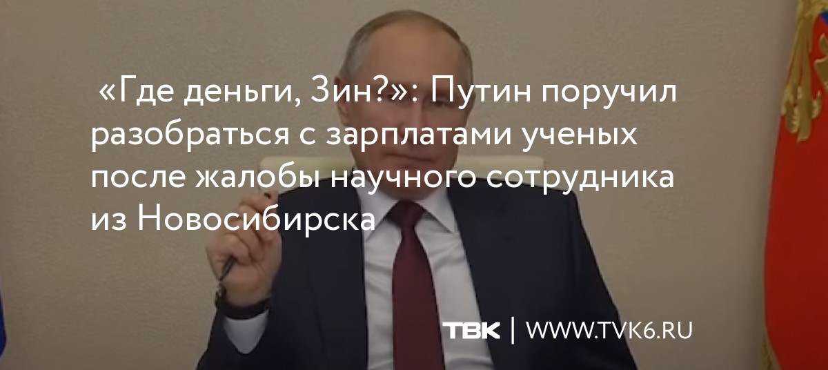 «Где деньги, Зин?»: Путин поручил разобраться с зарплатами ученых после жалобы научного сотрудника из Новосибирска