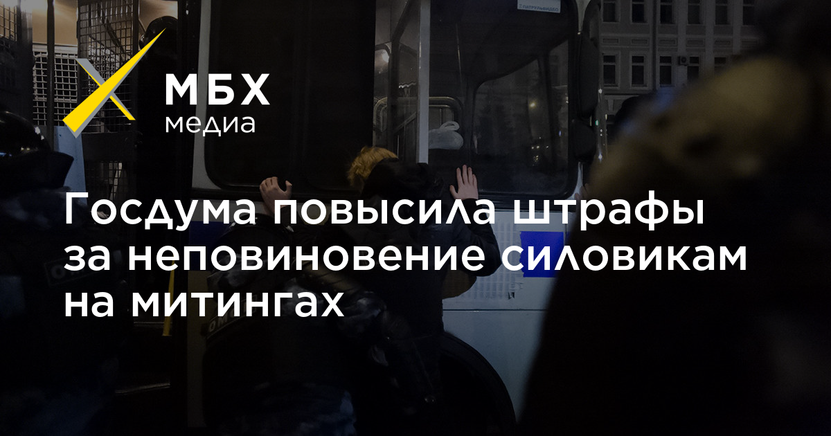 Штраф за первое неповиновение сотрудникам правоохранительных органов составит 2-4 тысячи рублей, вместо 500-1000 рублей, а за повторное нарушение статьи участником митинга — от 10 до 20 тысяч рублей, вместо пяти.