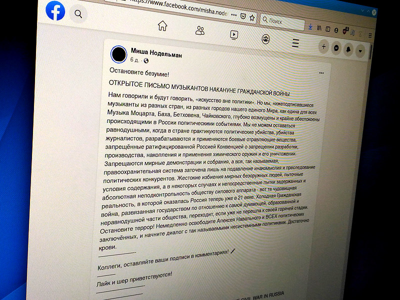 "Нам говорили и будут говорить, "искусство вне политики". Но мы, нижеподписавшиеся музыканты из разных стран, из разных городов нашего единого Мира, как едина для всех Музыка Моцарта, Баха, Бетховена, Чайковского, глубоко возмущены и крайне обеспокоены происходящими в России политическими событиями. Мы не можем оставаться равнодушными, когда в стране практикуются политические убийства, убийства журналистов, разрабатываются и применяются боевые отравляющие вещества", - говорится в письме.