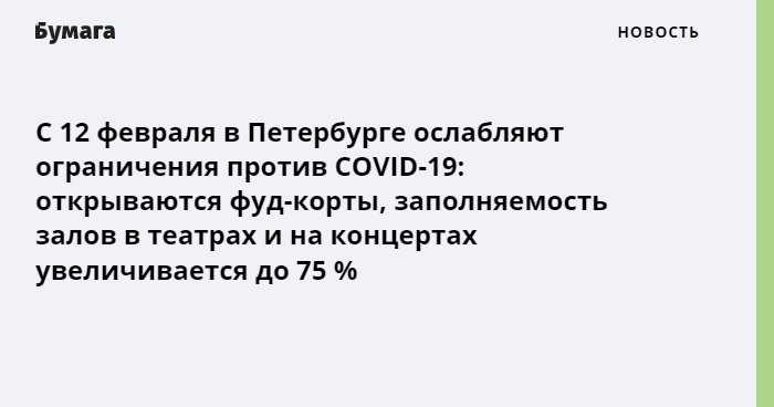 С 12 февраля в Петербурге ослабляют ограничения против COVID-19