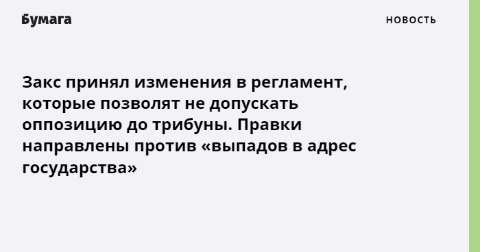 — Хотите заткнуть оппозиции рот перед выборами? Тогда уж честнее было бы сразу принять проект о том, что оппозиционные депутаты вообще не могут ни выступать, ни вносить проекты. Их пока еще будут пускать в зал заседаний, но это ненадолго.