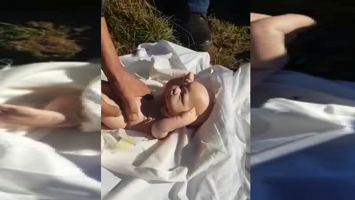 – В перинатальном центре на Семашко, 3 [в Ставрополе], родились дети у меня, – говорит мужчина за кадром. – Привез их в Дагестан хоронить. Начал вскрывать саван, вот что я увидел. Здесь куклы, натуральные куклы! Значит, мои дети живы, получается?