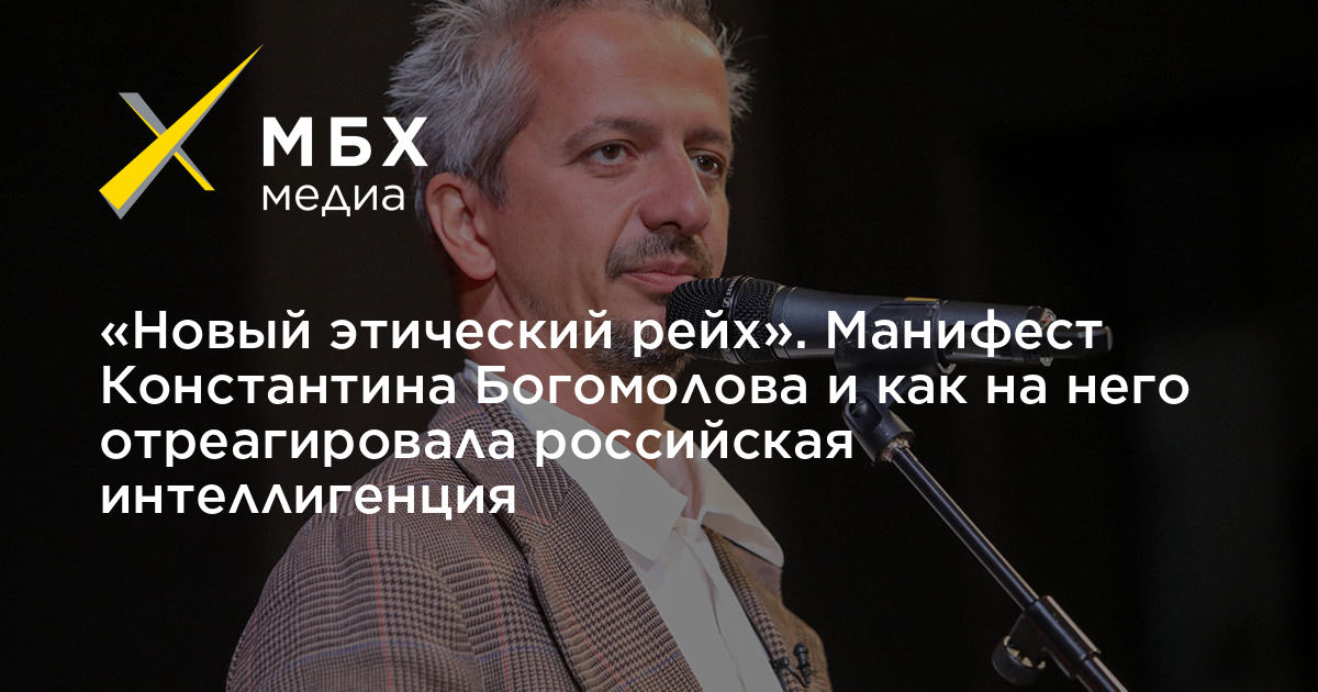 Театральный и кинорежиссер Константин Богомолов написал манифест, в котором сравнил идеологию современного западного общества с нацизмом – текст опубликовала «Новая газета». По мнению Богомолова, западная цивилизация «несется в босховский ад», где ее встретят «мультикультурные гендерно-нейтральные черти». У России есть шанс спастись — надо «отцепить вагон» поезда западной цивилизаци. Режиссер предлагает не ориентироваться на нынешние западные ценности, а строить «старую добрую Европу», «о которой мы мечтали» и «которую потеряли». «МБХ медиа» публикует несколько фрагментов манифеста и рассказывает, как на него отреагировали журналисты, писатели, деятели искусства и культуры.