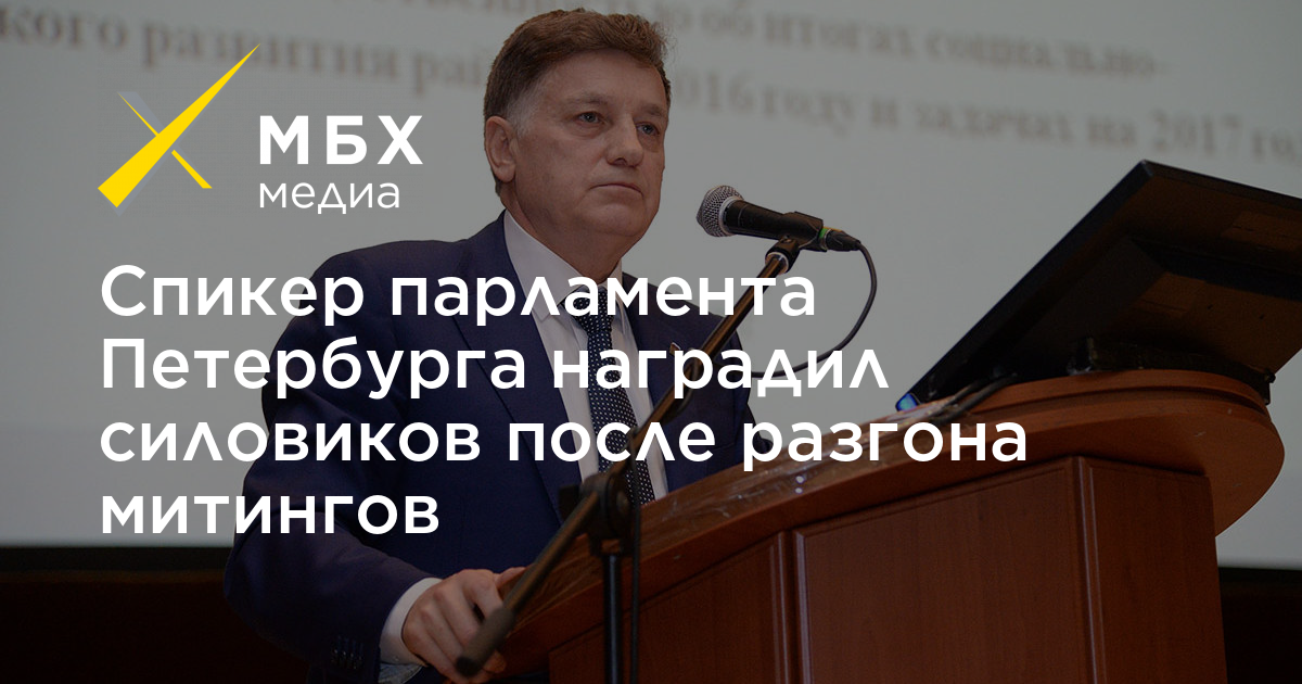 Спикер парламента Петербурга наградил силовиков после разгона митингов