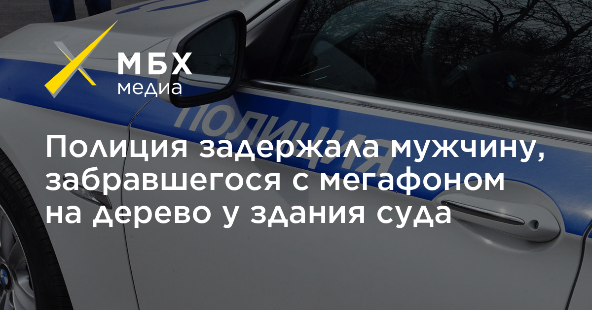 Полиция задержала мужчину, забравшегося с мегафоном на дерево у здания суда