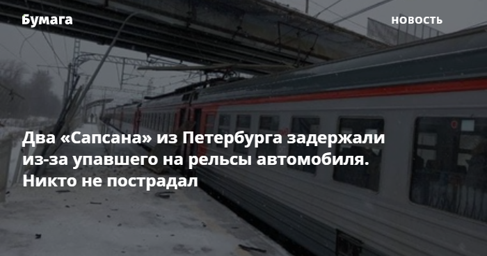 Два «Сапсана», которые следовали из Петербурга в Москву, задержали в дороге из-за упавшего с путепровода автомобиля. Об этом сообщает Московская межрегиональная транспортная прокуратура.