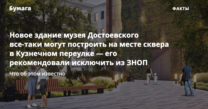 Музей не отказывался от идеи построить новое здание в Кузнечном переулке. Фонд «Петербург Достоевского» готов компенсировать это благоустройством другой зеленой зоны