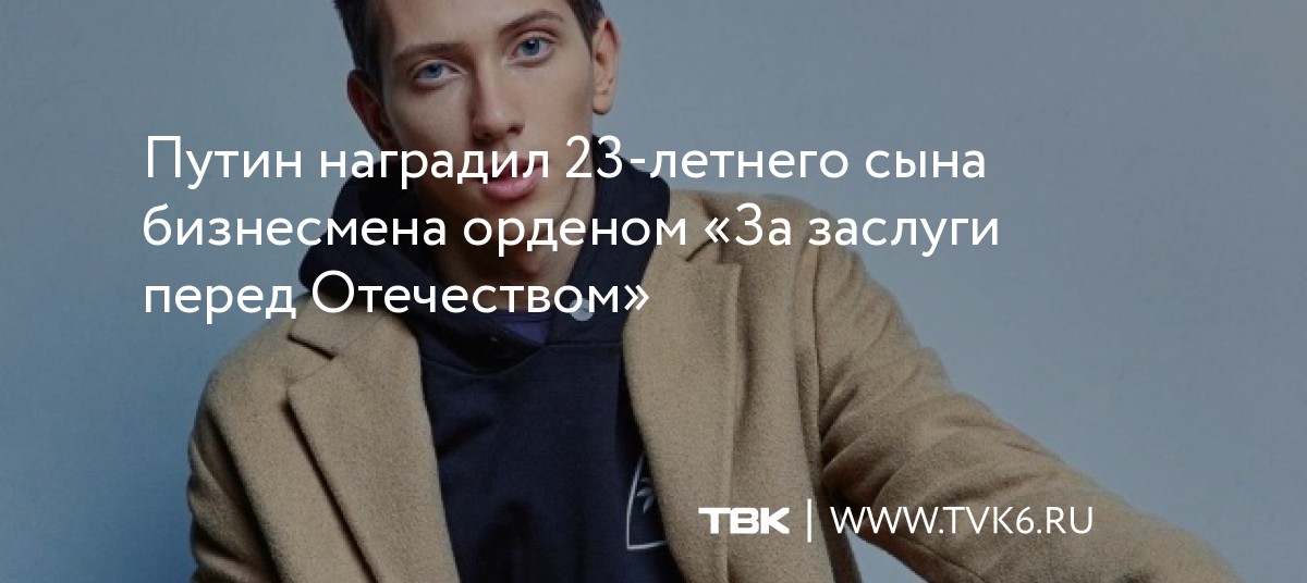 Путин наградил 23-летнего сына бизнесмена орденом «За заслуги перед Отечеством»