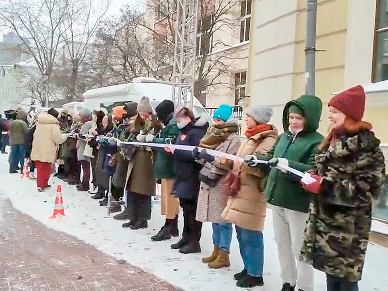 В Москве на Старом Арбате активистки выстроились в цепь солидарности в поддержку женщин-политзаключенных