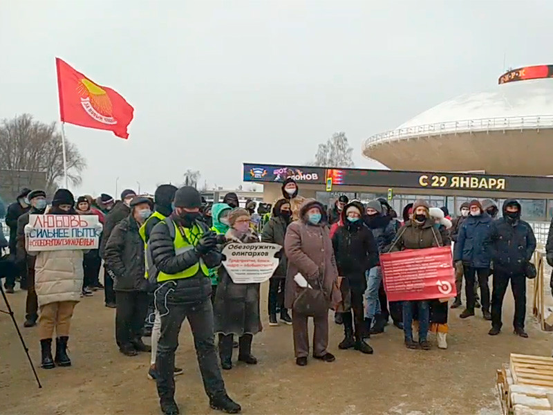 Активисты стоят с плакатами, флагами РФ и логотипами партий - организаторов мероприятия. Протестующие требуют свободу политзаключенным, в том числе Алексею Навальному, кричат "Путин - не наш президент".