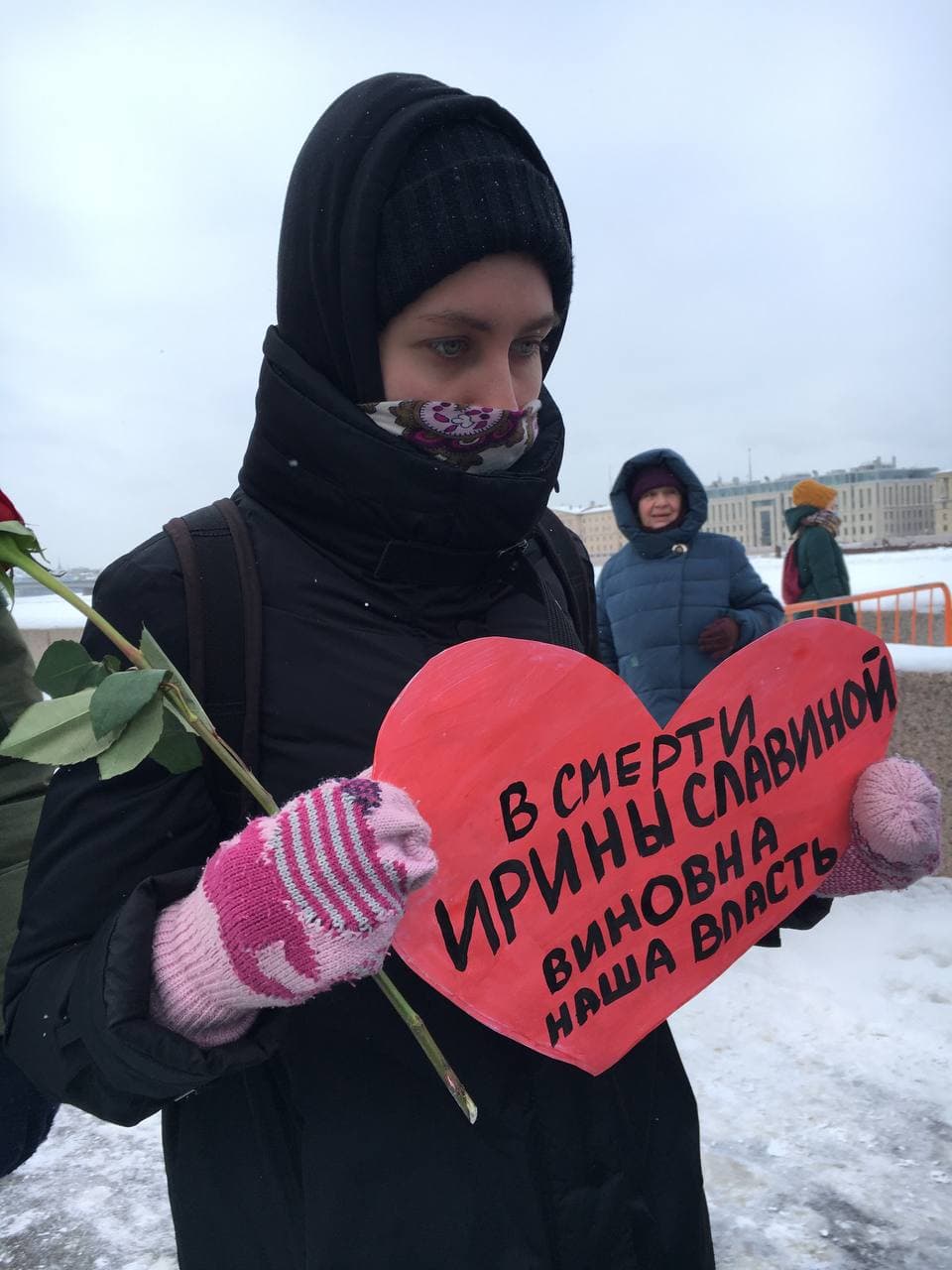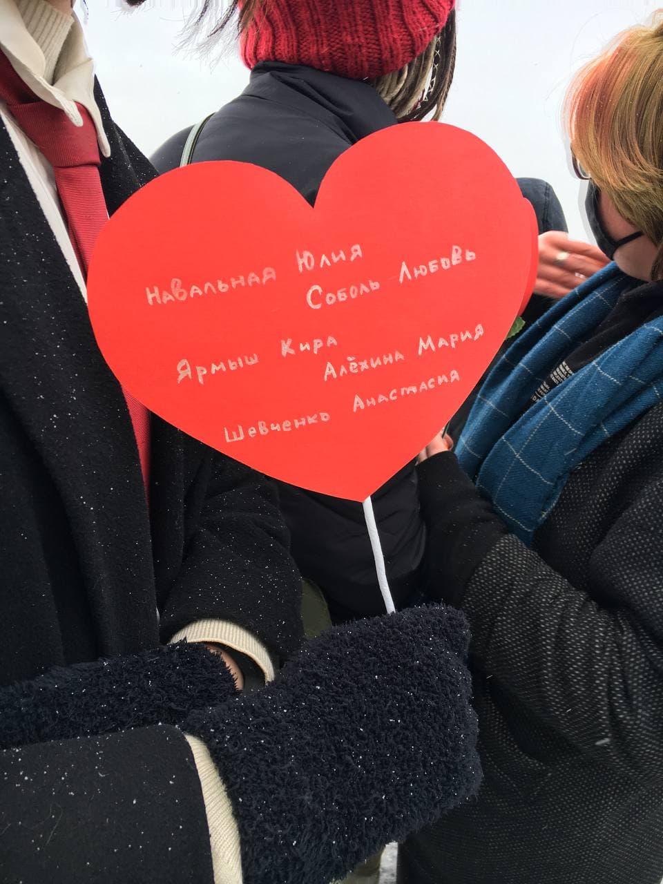 У памятника жертвам политических репрессий на Воскресенской набережной проходит акция «Феминистская цепь солидарности» с политзаключенными. В ней участвует более 40 человек. Вот с какими слоганами они вышли.