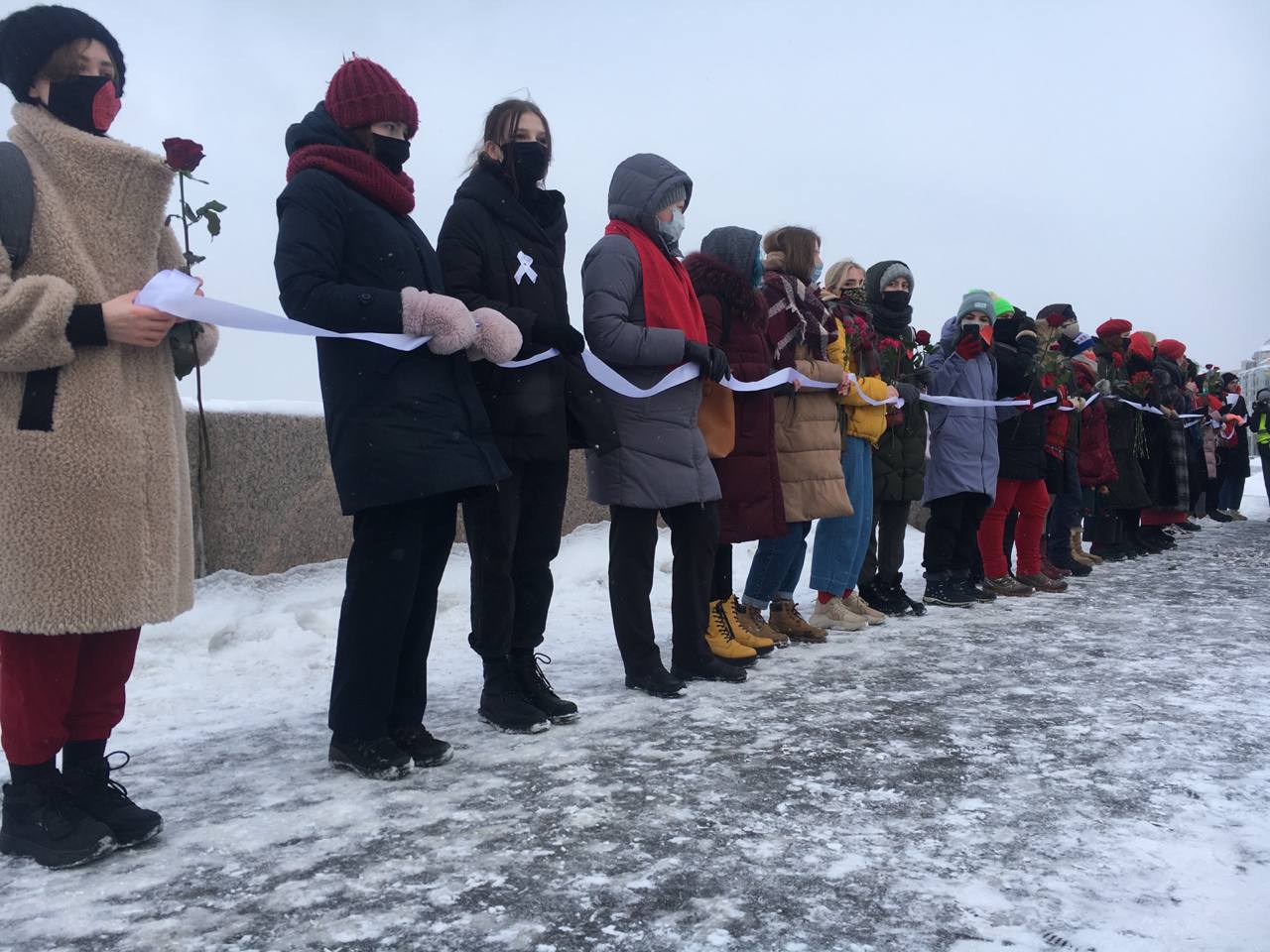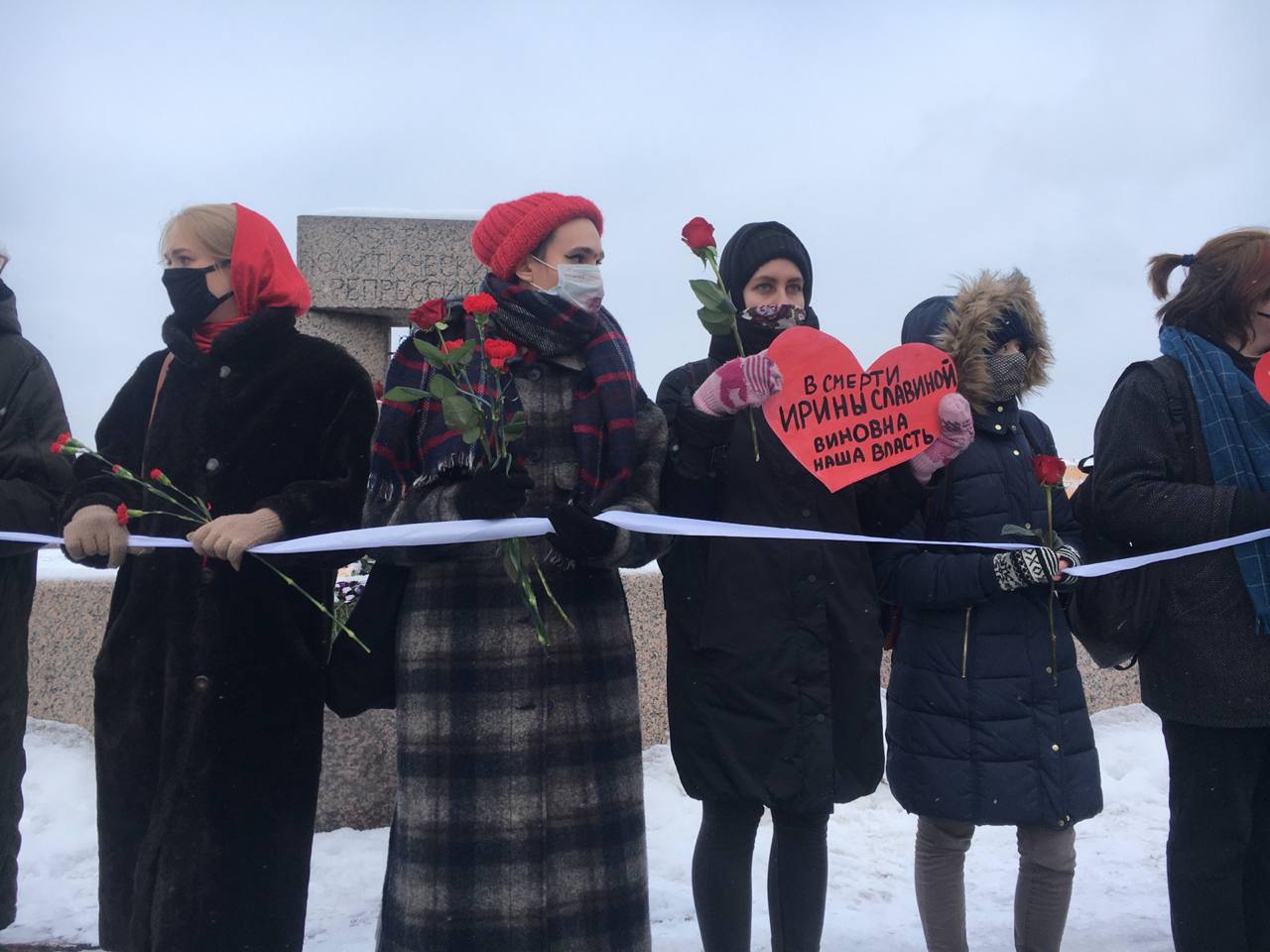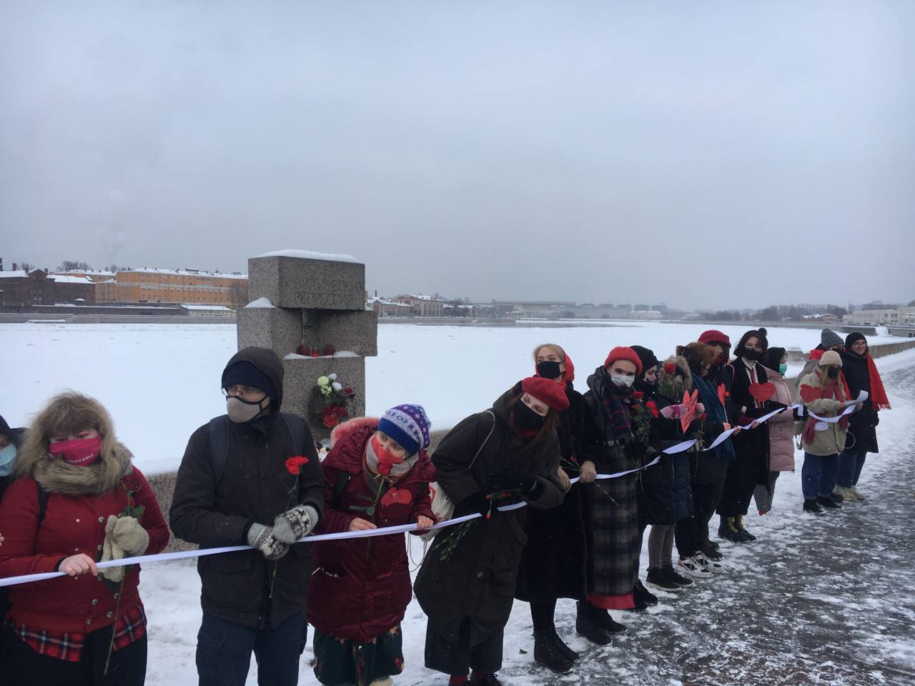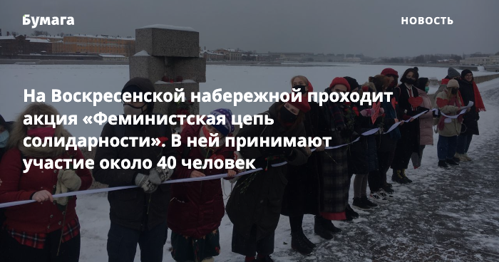 В Петербурге на Воскресенской набережной у памятника жертвам политических репрессий прошла акция «Феминистская цепь солидарности». Об этом сообщает корреспондент «Бумаги».
