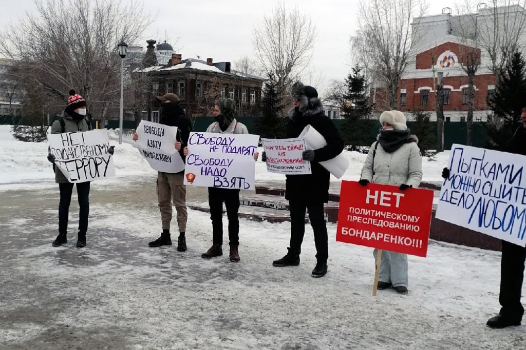 Один из плакатов касался депутата саратовского облпарламента Николая Бондаренко: «Нет политическому преследованию Бондаренко».