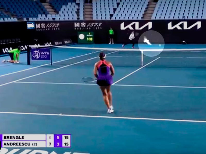 В одном из эпизодов птица спланировала на землю именно в тот момент, когда Андрееску выполнила подачу навылет, и розыгрыш пришлось переиграть.