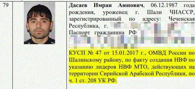 По официальной версии следствия, именно в бандформирование Имрана Дасаева входили все задержанные в декабре 2016 и январе 2017 года жители Чечни. Сами они, правда, узнали об этом и познакомились друг с другом только в подвалах Полка им. Кадырова.
