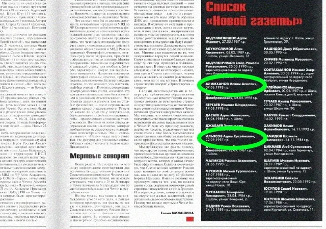 При этом, по официальной версии чеченского МВД, они никогда не задерживались сотрудниками силовых структур, в конце декабря 2016 года выехали из Чечни и примкнули к террористическим организациям в Сирии. Правда, МВД по ЧР установило этот факт только осенью 2017 года, после того как в апреле 2017 года мы передали в Следственный комитет России список казненных жителей Чечни. В этом списке значатся и Адам Ильясов, и Ислам Алимханов.