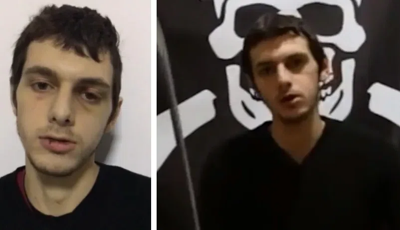На 19-й минуте 46-й секунде этой видеозаписи нам снова показывают Сайхана Эскарбиева и затем Альви Хакимова. Но за их спинами уже совсем другой флаг — тоже черный, но с белым черепом и костями. При этом и Эскарбиев, и Хакимов одеты в ту же самую одежду, в которой их снимали на фоне игиловского флага. За кадром звучит голос диктора: «А вот совершенно другая съемка и совершенно иное мнение этих же заблудших. Еще вчера столь рьяно и решительно готовые выполнить любое указание своих порочных главарей в нужной ситуации, они тут отрекаются от них…»