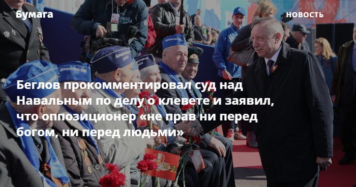 Беглов прокомментировал суд над Навальным по делу о клевете на ветерана