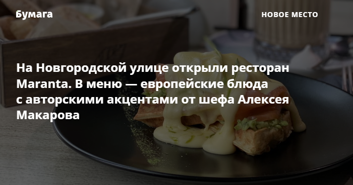 На Новгородской улице, 23 начал работу ресторан Maranta, сообщили «Бумаге» представители проекта. Заведение назвали в честь одноименного цветка из Юго-Восточной Америки: считается, что маранта приносит в дом богатство и удачу.