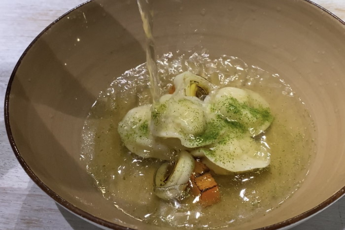 Акцент в меню сделали на блюда европейской кухни в авторской обработке шеф-повара Алексея Макарова, работавшего в заведениях Ginza Project и на «Летучем Голландце». Например, говяжьи щечки он подает с кукурузной полентой и грибами, а стейк из цветной капусты — с грибным айоли и баклажаном мисо.