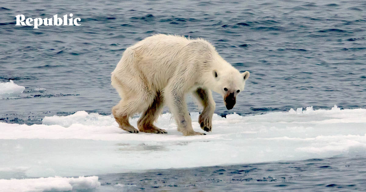 Подобные фото отощавших и изможденных белых медведей регулярно появляются в СМИ и объявляются «лицом глобального потепления» и «результатом безответственности человечества». Скептики считают подобные заявления манипуляцией, не имеющей достаточных научных оснований.