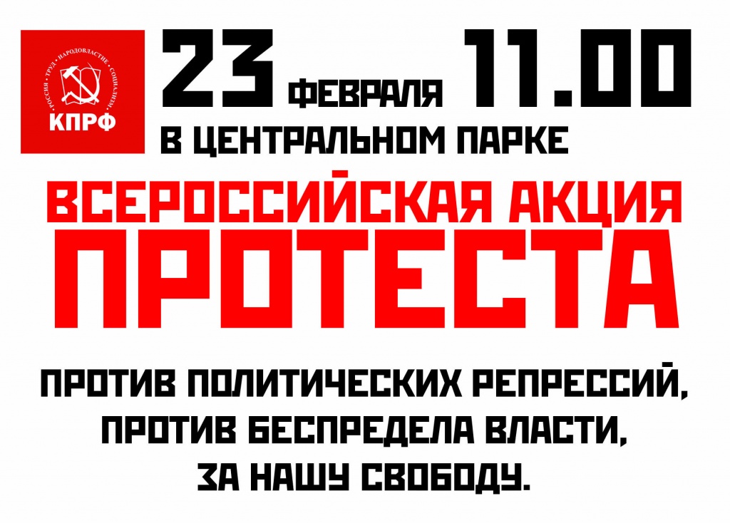 23 февраля владимирское отделение КПРФ планирует провести митинг против политических репрессий и “беспредела власти”. Акция пройдёт в Центральном парке. Начало – в 11.00.