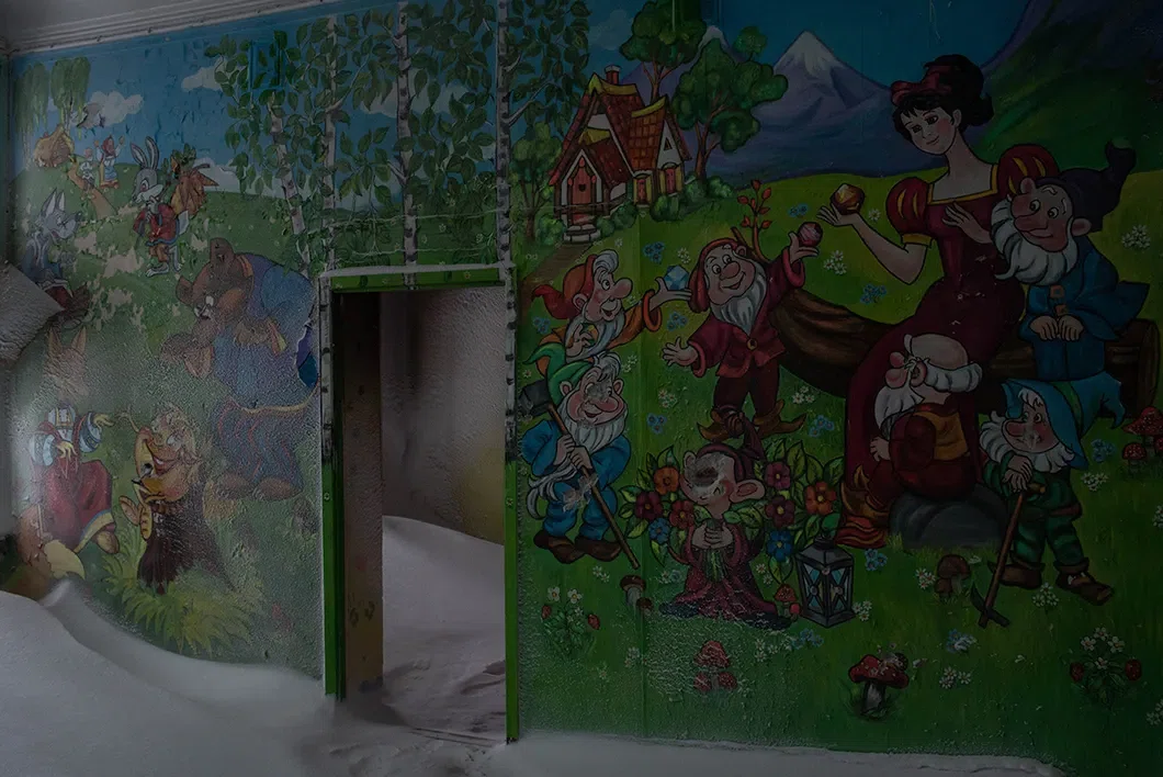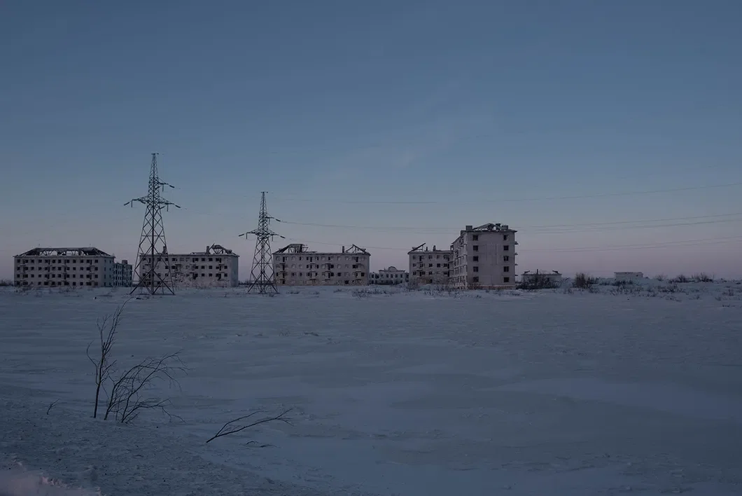 Перед глазами заброшенный поселок. Покинутые пятиэтажки зияют пустыми глазницами. Толстые стены покрыты ледяной корочкой. Между сугробами медленно ползут вагоны с углем.