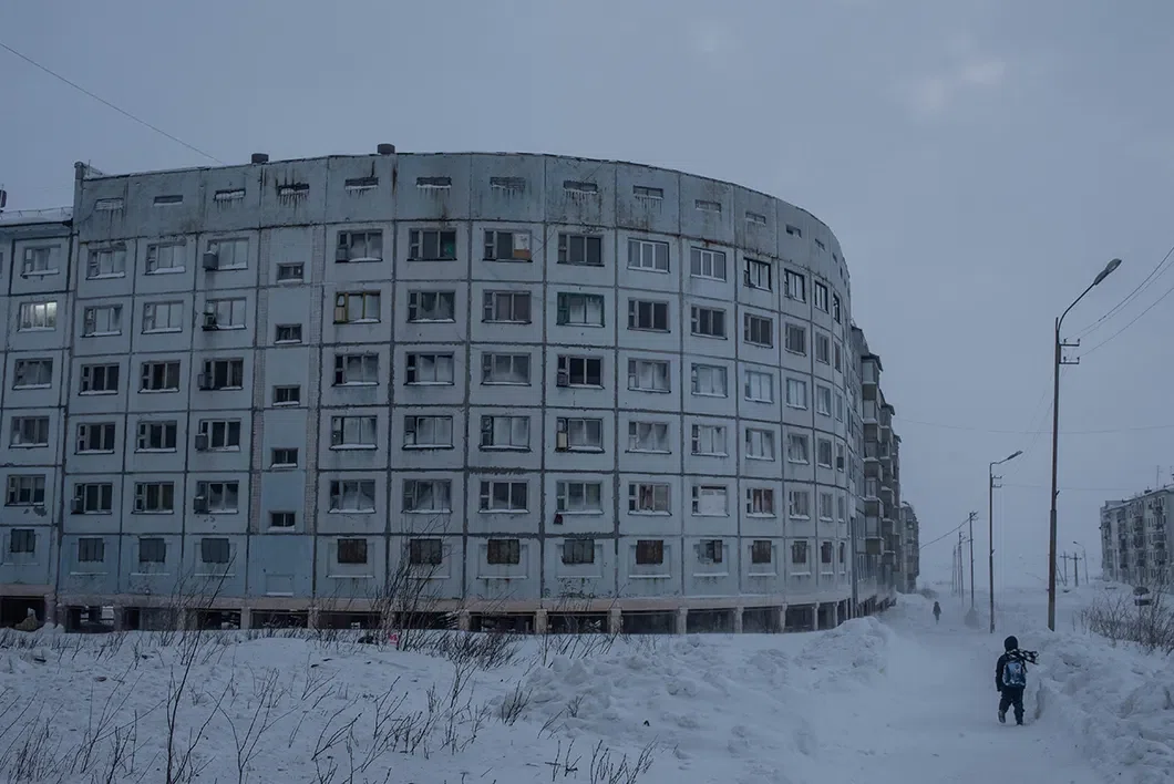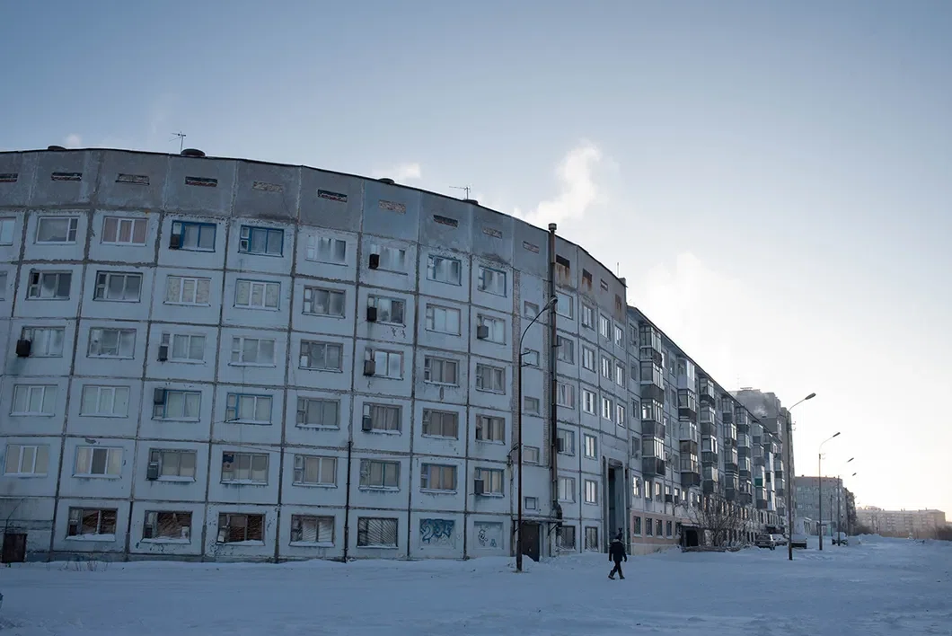 Основная функция полукруглых домов в Воркуте и прилегающих поселках — защита квартир от сильного ветра и снега. Фото: Виктория Одиссонова / «Новая газета»