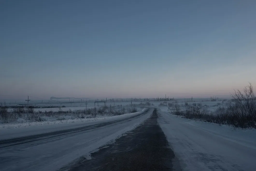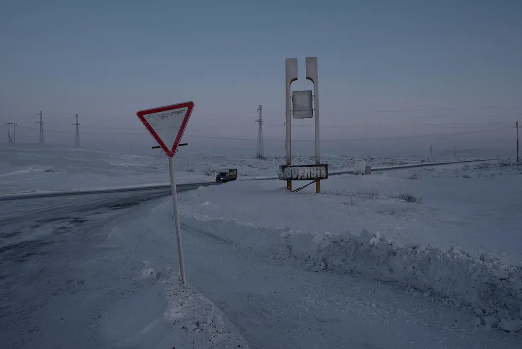 Единственная в Воркуте большая автомобильная дорога — это воркутинское «кольцо», соединяющее город с остальными поселками. Из «центральной» России до Воркуты дорог нет. Фото: Виктория Одиссонова / «Новая газета»