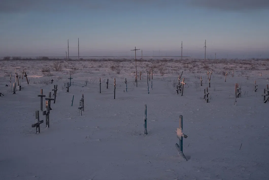Мемориальное кладбище заключенных, убитых во время забастовки в 1953 году. Недалеко от поселка Юр-Шор. Фото: Виктория Одиссонова / «Новая газета»