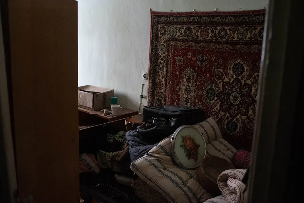 Двери опустевших квартир вскрыты, внутри беспорядок. На полу одной из них вперемежку — посуда, проросшая картошка, виниловые пластинки, матрас, чемодан, книги. Кое-где до сих пор стоит мебель и висят люстры…