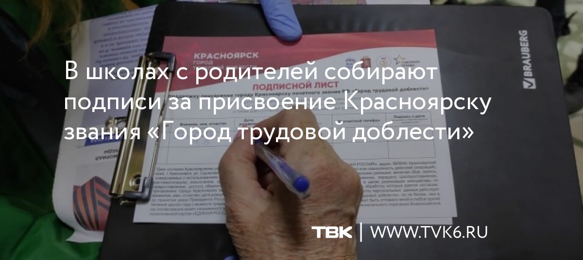 В школах с родителей собирают подписи за присвоение Красноярску звания «Город трудовой доблести»
