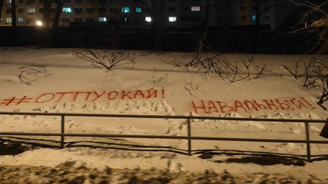 Во Владивостоке на улице 40 лет ВЛКСМ сотрудники ДПС задержали активистов Александра Налимова, Эльдара Фетисова и Ивана Козырева за надпись на снегу «#Отпускай! Навальный!», сообщает сотрудничающий с ОВД-Инфо юрист Дмитрий Зубарев.