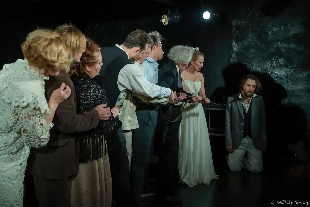 Мы страдаем, мы не понимаем диагноз и не видим выхода, потому что мы находимся внутри этой самой пьесы и не в состоянии выскочить наружу, как ни старайся. То же самое делают актеры на сцене МЧЛ: проживают жизнь героев до нервной дрожи в пальцах, до пота на лбу, до цвета страдания в зрачках. Проживают знакомую пьесу нашей жизни, где общество не может вырваться из своей роли жертвы, каждой новой попыткой загоняя себя в нее еще глубже.