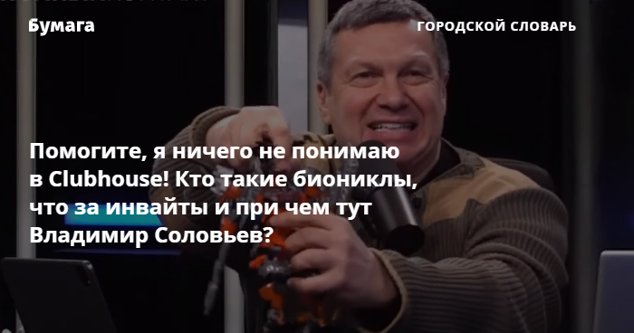 У русскоязычного Clubhouse уже сформировалась своя терминология. Откуда взялись биониклы и почему они конфликтуют с лего-человечками? При чем тут Владимир Соловьев? И что обсуждают в комнате «Кто такой и зачем нужен»? «Бумага» составила словарь основных понятий Clubhouse для тех, кто ничего не понимает.