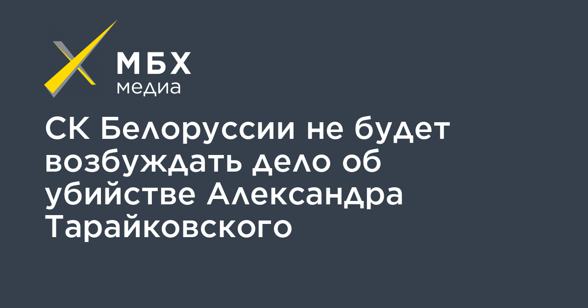 Следственный комитет Белоруссии не будет возбуждать уголовное дело об убийстве участника протестов в Минске Александра Тарайковского. Об этом сообщает «Белта» со ссылкой на заявление главы СК республики Ивана Носкевича.