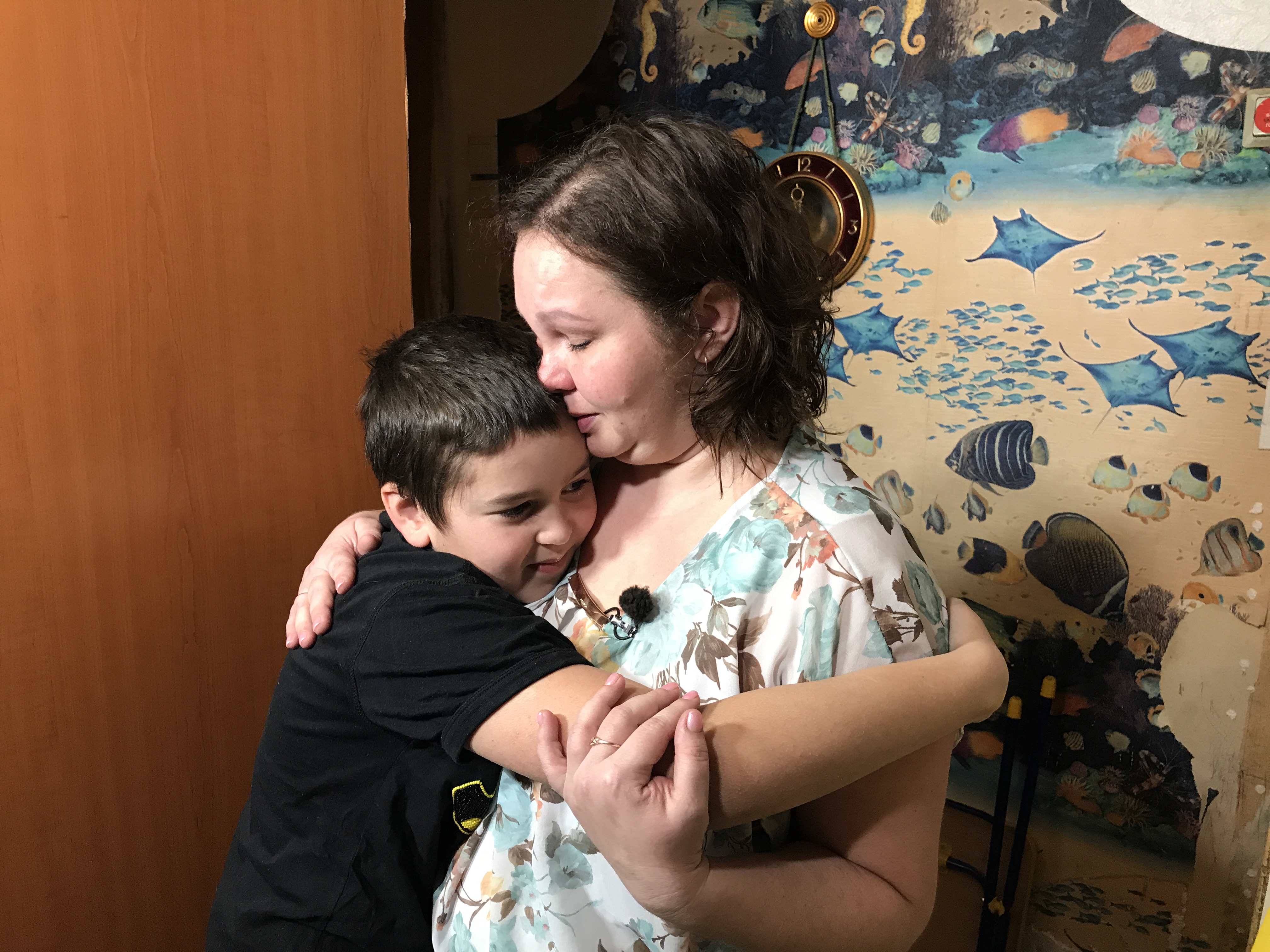 – Мы мечтаем купить дом, но у нас нет первоначального взноса, а это 15% на дом. Если дом – это три с половиной миллиона, то около 400–500 тысяч рублей надо. Пытаемся отложить, но не получается. Алик накопил, вот, 300 рублей, говорит: "Мама, я накопил, я тебе отдам". Приятно, что ребенок заботится... Мы не живем шикарно. Живем как все, питаемся гречкой, макаронами. Мяса практически не видим. Очень тяжело... – на этих словах Людмила не выдерживает и начинает плакать. Алик обнимает маму, пытаясь успокоить.