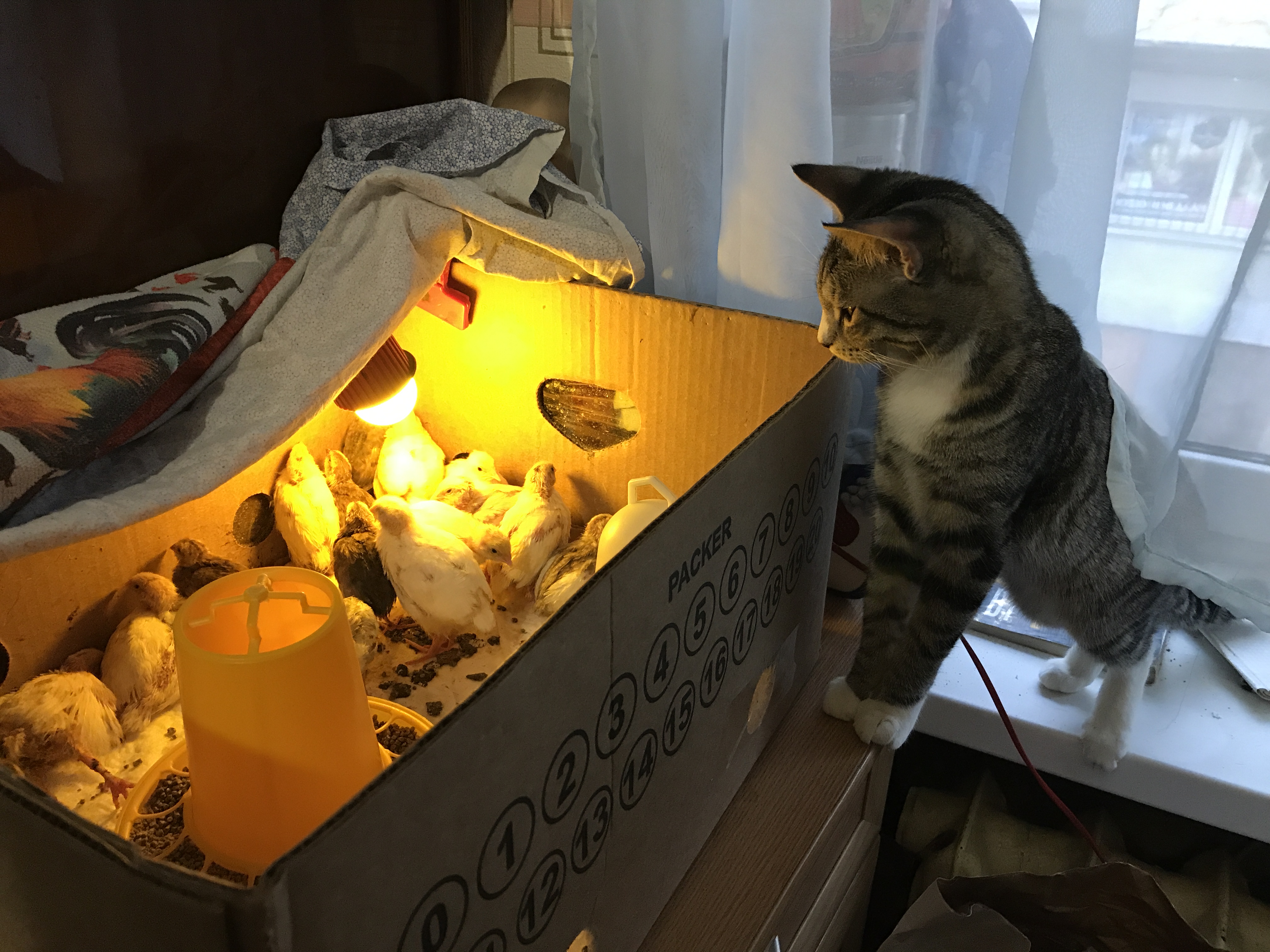 – В инкубаторе сейчас 30 яиц осталось. Их надо опрыскивать, смотреть за температурой и влажностью. 14 января вылупились первые птицы. Мы ждали первого вылупа, мама подготовила коробку. Первый вылупился, и потом пошли. Теперь двадцать птенцов живут в коробке, я их кормлю комбикормом, наливаю воду, – рассказывает парень.