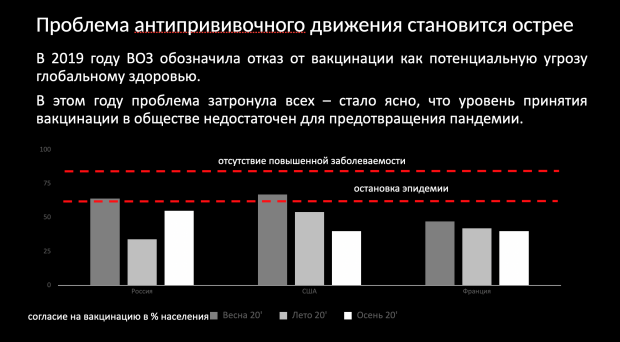 Денис Квасюк – участник хакатона «Прожектор 2020», который прошел в прошлом году в Санкт-Петербурге. Тогда команда начала исследование и хотела создать усредненный портрет антипрививочника, узнать об основных паттернах сообщества, чтобы выстраивать с ними продуктивный и мирный диалог.
