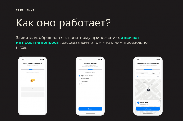 Однако на хакатоне со специалистами по машинному обучению поняли, что данных для обучения недостаточно и команде еще предстоит их собрать. Для этого команда перестроилась на другую задачу: создать прототип мобильного приложения для автоматизированной помощи в случае полицейского насилия.