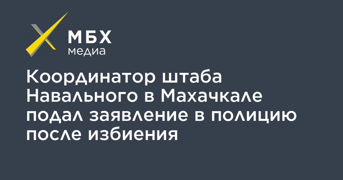 Координатор штаба Навального в Махачкале Руслан Аблякимов подал заявление в полицию после того, как его избили неизвестные. Об этом он сам рассказал «Юг. МБХ медиа».