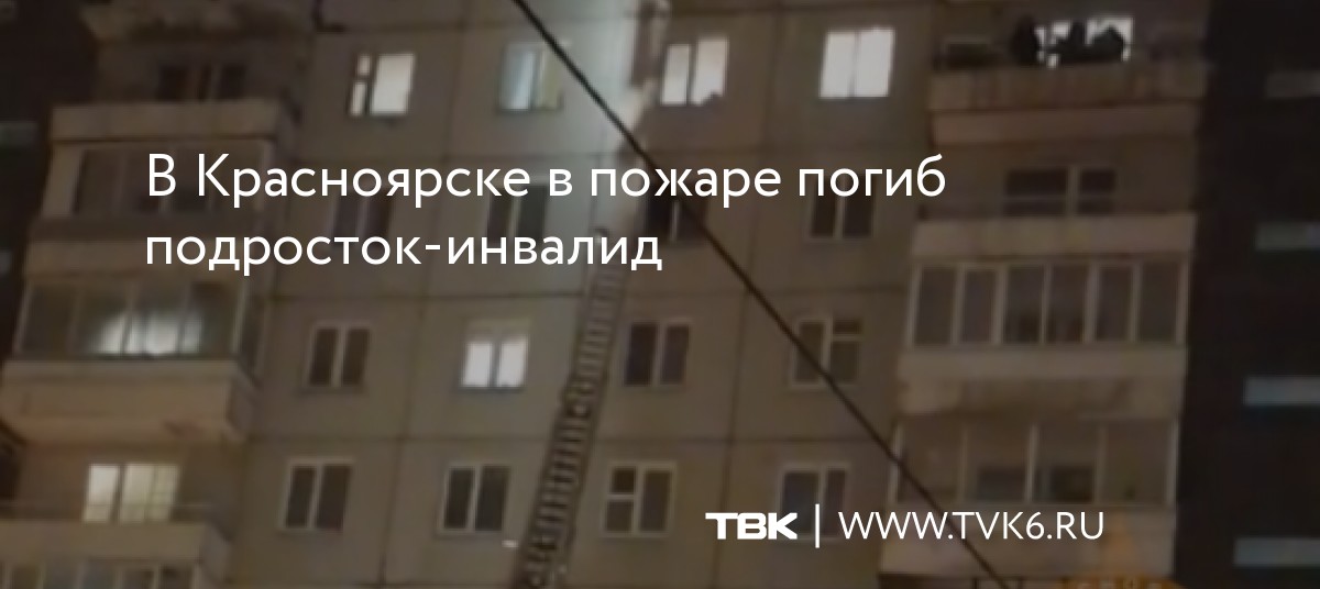 В Красноярске в мкрн. Солнечный погиб в пожаре 15-летний подросток. Возгорание произошло на 8 этаже в доме на просп. 60 лет Образования СССР, 8. Огонь разгорелся на площади 10 кв. м. В это время в квартире находились три человека: мать с двумя детьми. Пожарным удалось спасти девушку и младшего ребенка. Подростка не смогли вовремя вынести из горящей квартиры, он надышался угарного газа и погиб. По сообщениям очевидцев, у подростка была инвалидность.