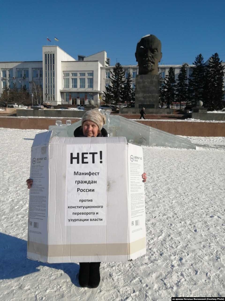 В марте 2020 года Наталью Филонову оштрафовали на 20 тысяч рублей из-за одиночного пикета в память Бориса Немцова. На решение суда не повлияло даже то, что пенсия Филоновой составляет 11 400 рублей и она воспитывает ребенка с инвалидностью.