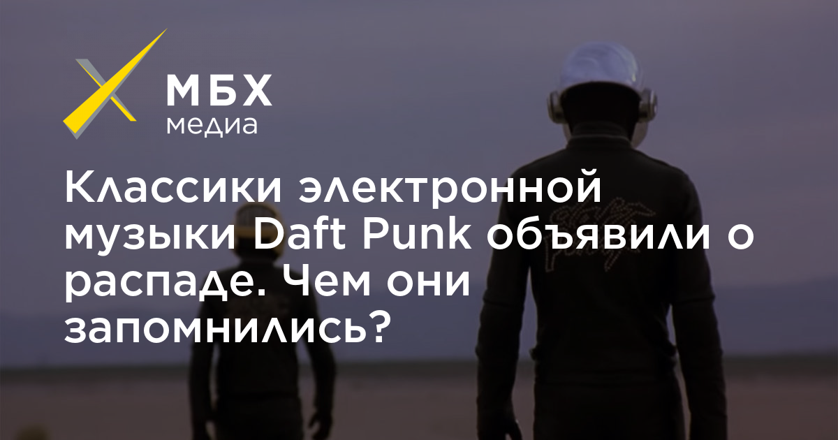 Прославленный дуэт из Франции Daft Punk объявил о прекращении совместной деятельности. Эту информацию подтвердила изданию Pitchfork представитель артистов Кэтрин Фразье, а сама группа попрощалась восьмиминутным видео Epilogue, размещенном на YouTube-канале коллектива. «МБХ медиа» вспоминает главные этапы в жизни музыкантов и предлагает еще раз переслушать их лучшие треки.