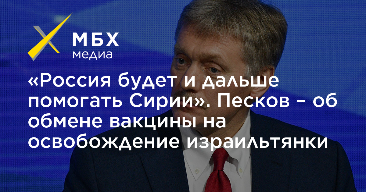 «Россия будет и дальше помогать Сирии». Песков — об обмене вакцины на освобождение израильтянки