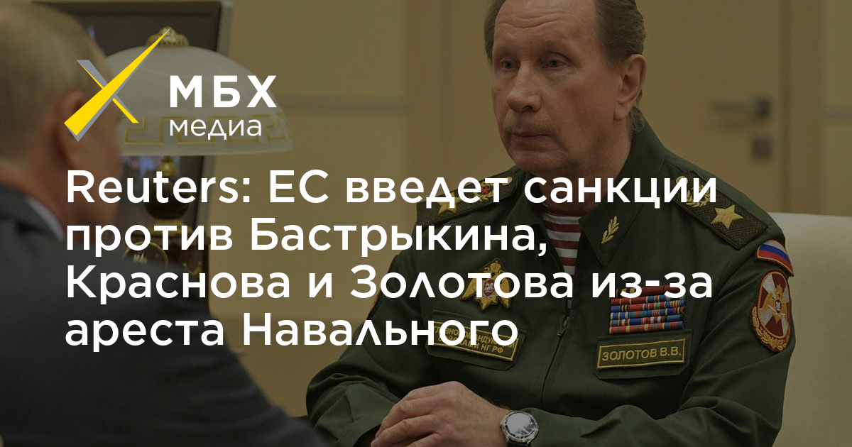 На встрече министров в Брюсселе не обсуждались конкретные имена чиновников. Однако, по словам источников Reuters, санкции планируется ввести против председателя Следственного комитета Александра Бастрыкина, главы Росгвардии Виктора Золотова, генпрокурора Игоря Краснова и директора ФСИН Александра Калашникова.