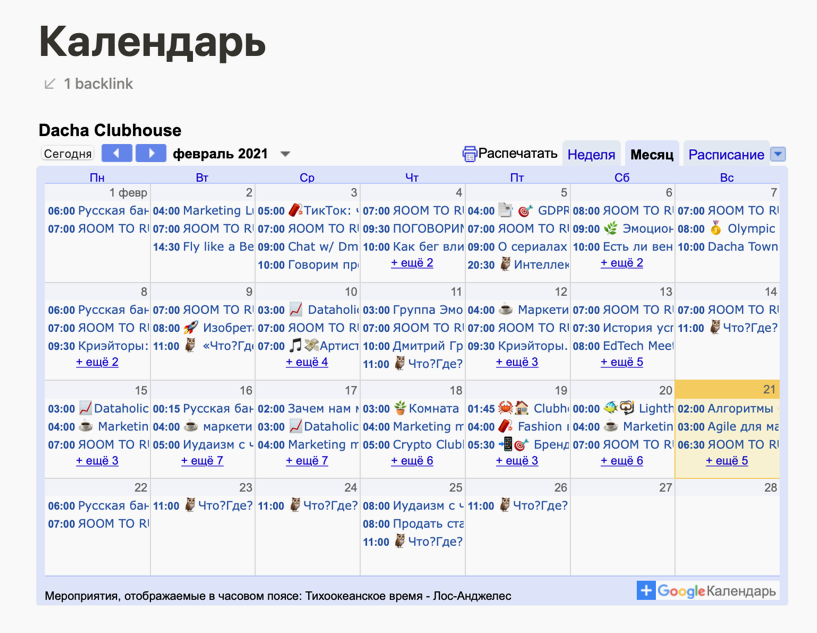Зачем слушать: под эгидой клуба регулярно появляются интересные обсуждения, у Dacha плотное расписание с мероприятиями на самые разные темы — от обсуждений бега до игры в «Что? Где? Когда?».
