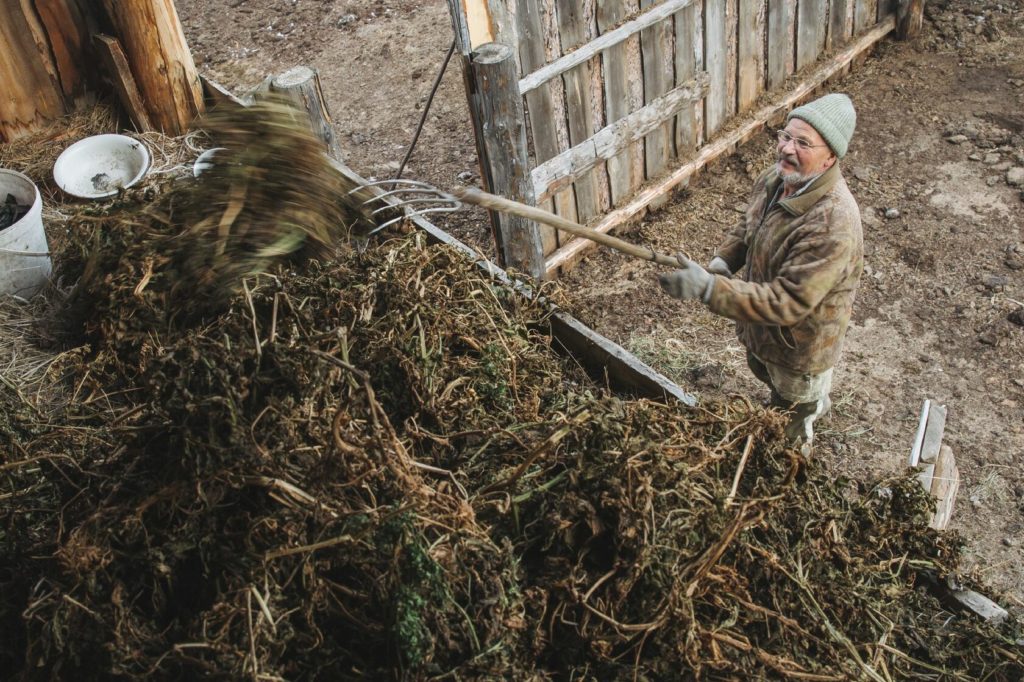 Утром Вокин топит печку, заваривает порошковый кофе из банки, завтракает. Жена Надежда уехала в Хужир лечить зубы и живёт там две недели. Из Песчанки в больницу не наездишься. Вокин переливает кипяток из чайника, который стоит на печи, в большой термос. Электроснабжения в Песчанке нет, а в термосе вода будет горячей целый день, не нужно её подогревать на газовой плитке. Потом Вокин идёт убирать навоз за коровами, поить их, закладывать в кормушки сено. В обед едет чистить лесные дороги — собирать дрова на растопку. Зимой печку нужно топить утром и вечером. На это уходит не меньше 10 прицепов сосновых поленьев. В Хужире один прицеп дров стоит 5−6 тысяч рублей, а с доставкой в Песчанку — все 8 тысяч.