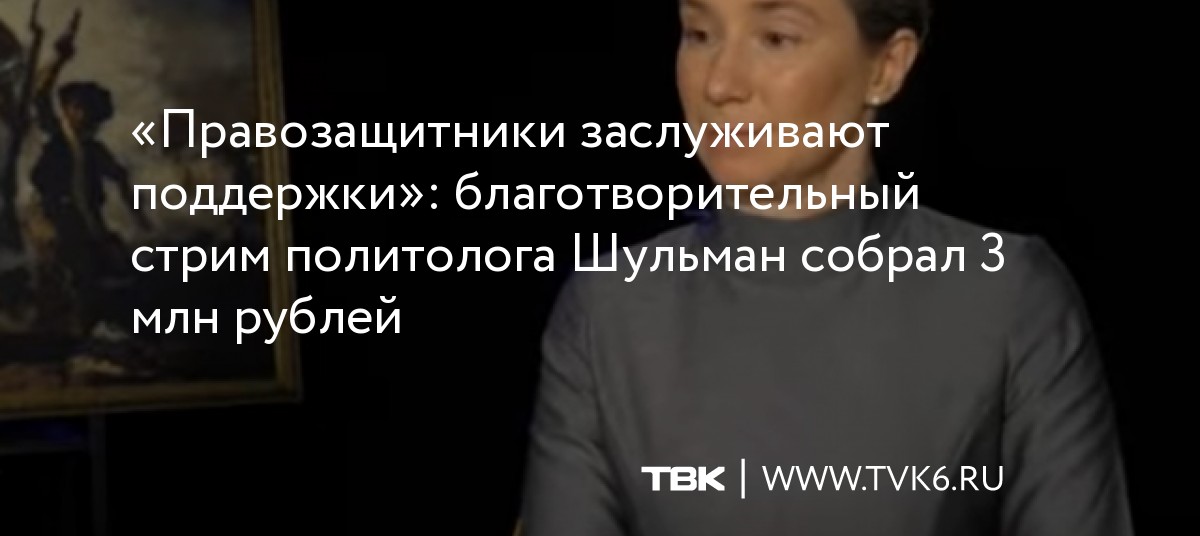К концу трансляции – она длилась 2 ч. 12 мин – Шульман собрала 3 млн 138 тыс. 382 руб.