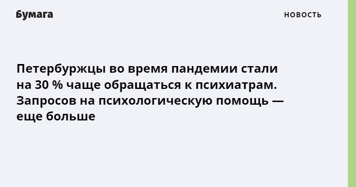 Петербуржцы в пандемию стали чаще обращаться к психиатрам